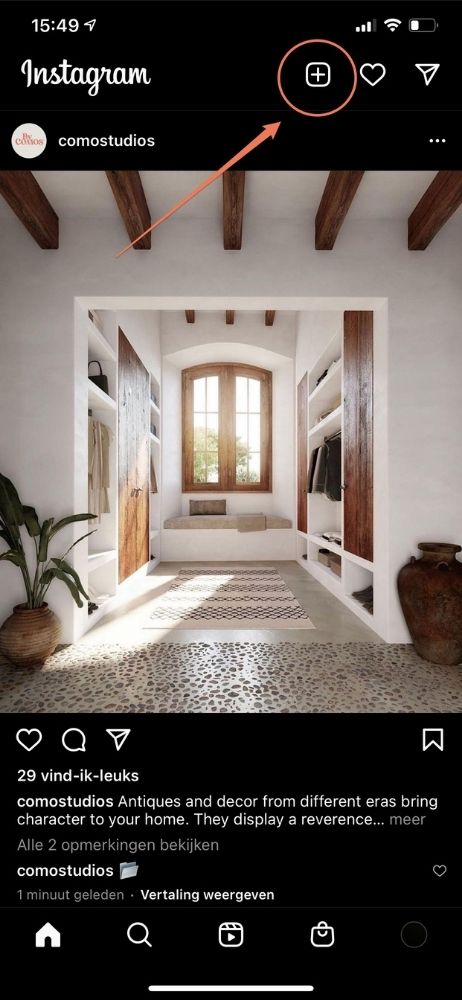 1. Ga naar je profiel pagina en klik rechtsboven op het plusje.