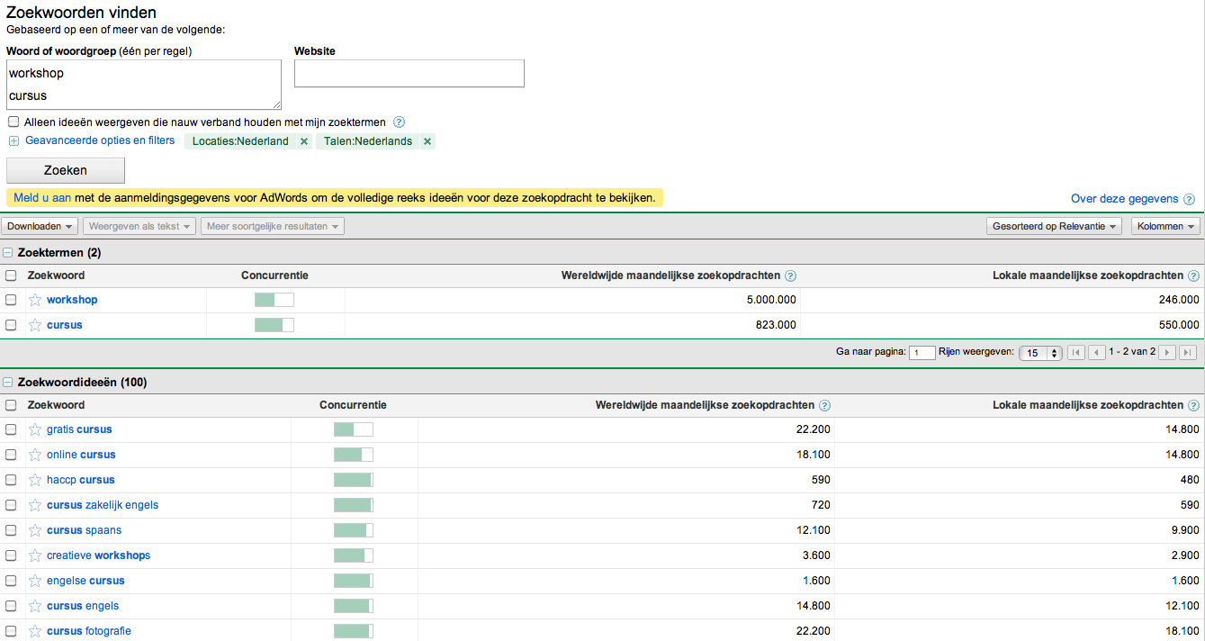 Google de woorden: [hulpprogramma zoekwoorden Adwords]