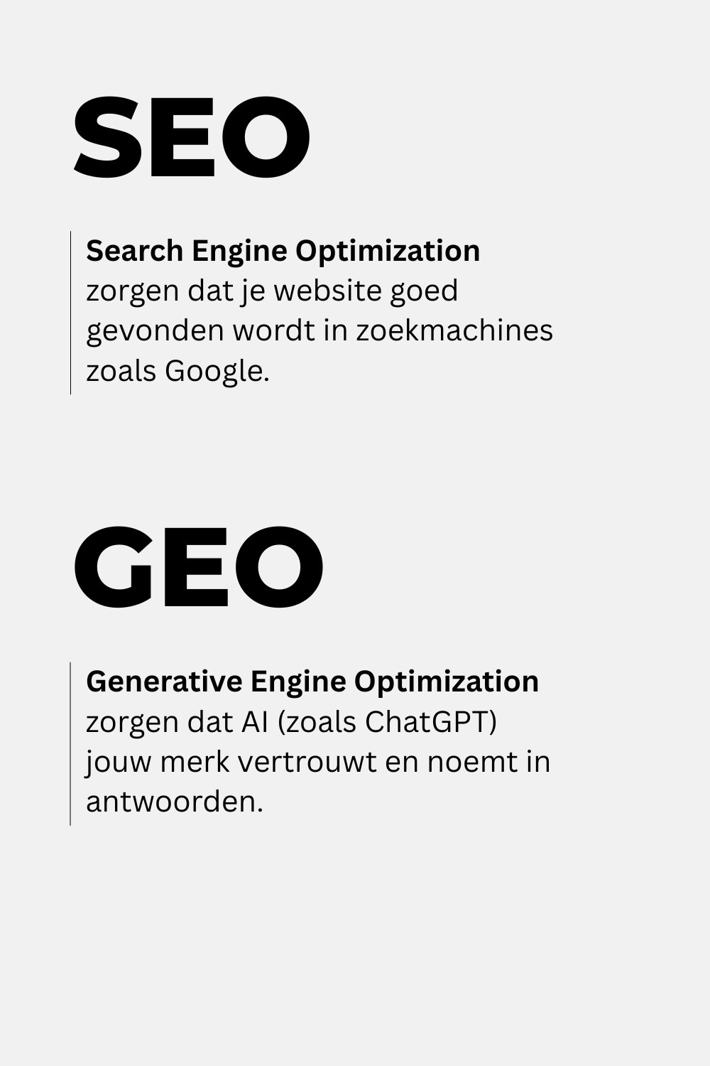 - GEO = onpage + autoriteit → om genoemd te worden door AI
